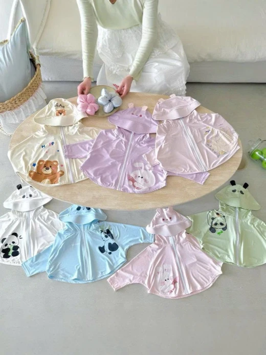 #2702p38 ÁO CHỐNG NẮNG TENCEL IN HÌNH Thiết kế có mũ, kéo khóa tiện lợi ✔️ Siêu nhiều mẫu – màu sắc tươi tắn ✔Size : 90-130 Giá: 122k Chốt 2702