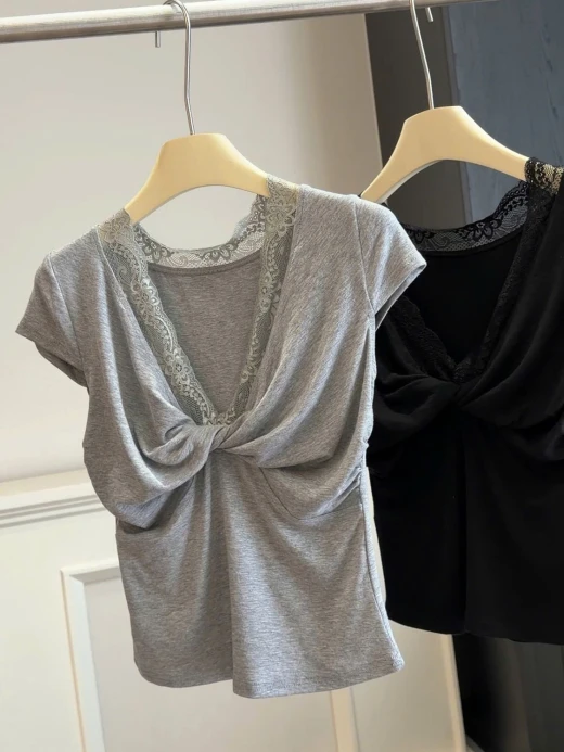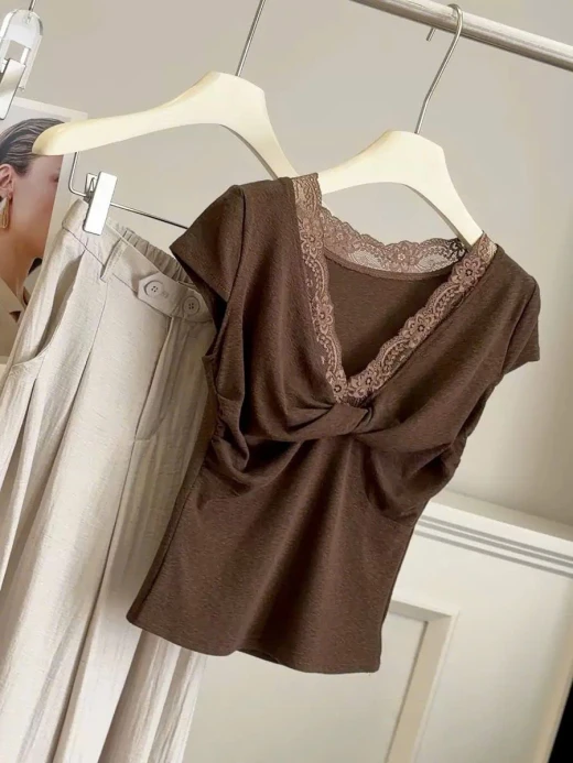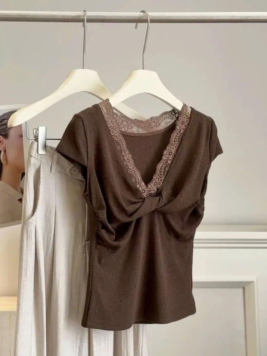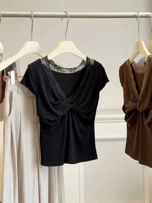 #2204p43 🌈ÁO CỔ REN CHO NỮ ANNA ✨ Thiết kế xoắn ngực + phối ren – vừa nữ tính vừa trendy ✨ Form ôm nhẹ tôn dáng – nhìn gọn gàng, hack dáng xinh ✨ Chất vải mềm mịn, thoáng mát – mặc cực thoải mái mùa hè ✨ Style nhẹ nhàng pha chút quyến rũ – đi chơi hay đi cà phê đều hợp 💖 Mix với quần jeans hay chân váy đều xinh hết nấc ❗️3 màu : nâu , đen , xám ✅frsz 40-60kg ☘️Giá: 165k 🚛Hàng od chốt 22/4