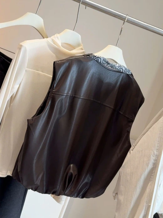 #2010a62 ÁO GILE DA ANNA Thiết kế gile da cá tính, trẻ trung – mix cực “đỉnh” với áo thun hoặc sơ mi trắng bên trong. Chất da mềm mịn, bóng nhẹ sang xịn mịn – mặc nhẹ vai, lên form chuẩn. 2 màu: đen, nâu ✅freesz dưới 65kg 🌸 giá 208k 🐬 chốt 20/10