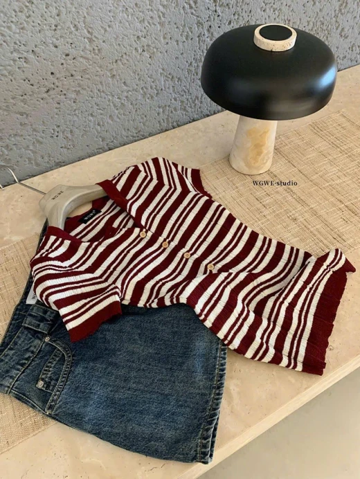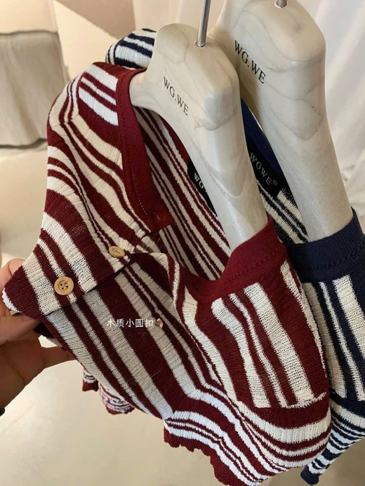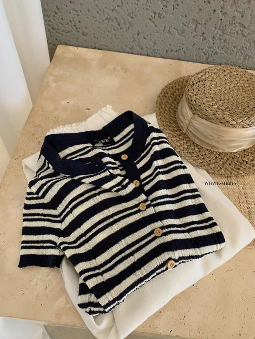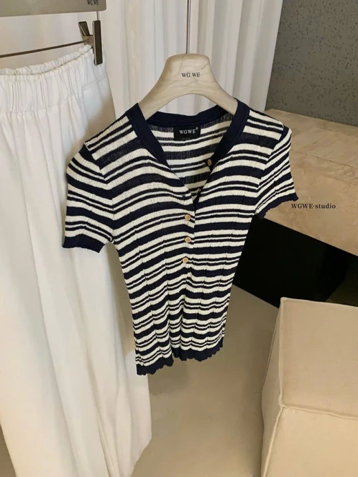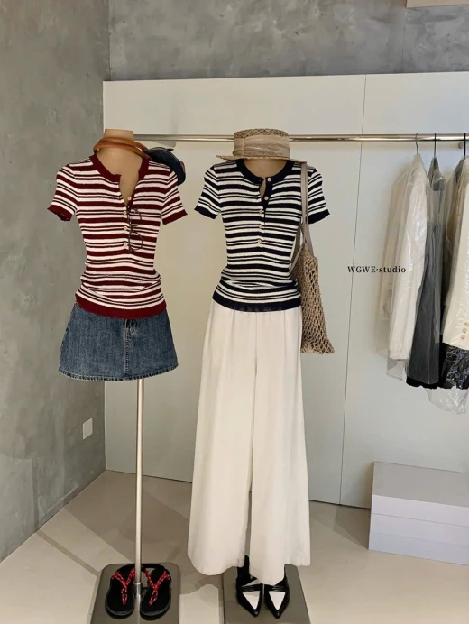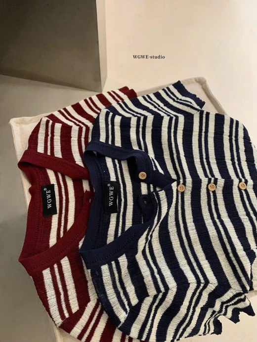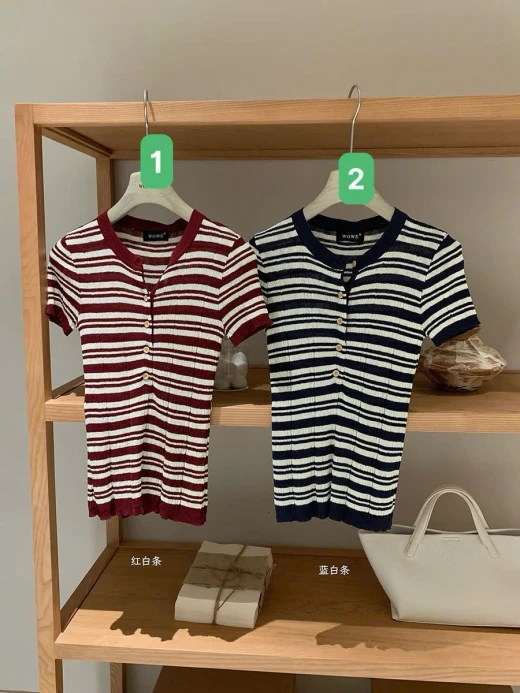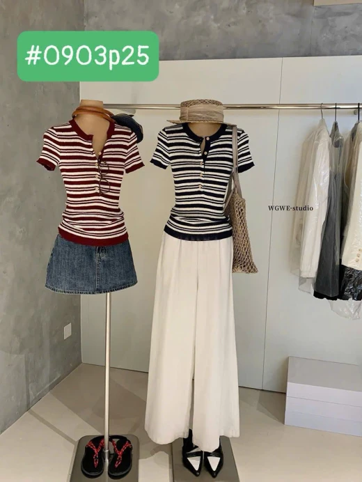 #0903p25 ÁO KẺ CỘC TAY NỮ WGWE 8288 Kiểu dáng trẻ trung basic đi chơi ở nhà đều xinh 2 màu: đánh số freesize 🌸 giá 170k 🐬 chốt 9/3