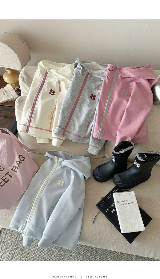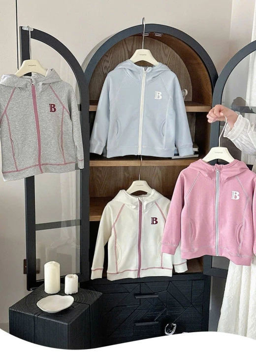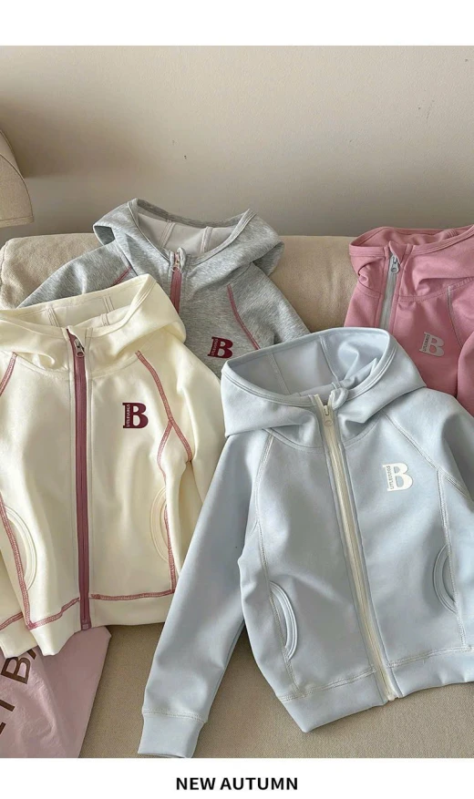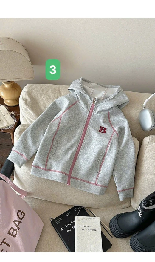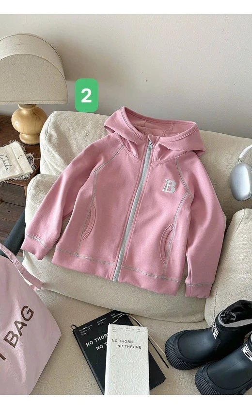 #0710a67 ÁO KHOÁC CHỮ B CÓ MŨ BG Sắm dần thui các mẹ ơi, cute dễ thương quá nè 4 màu đánh số sz 90-150 🌸 giá 181k 🐬 chốt 7/10