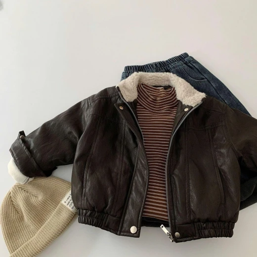#2612a43 ÁO KHOÁC DA CỔ LÓT LÔNG #XXXK/C SZ: 90-140 Giá: 315k chốt 2612
