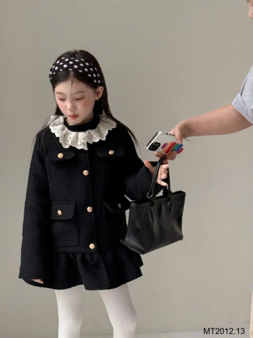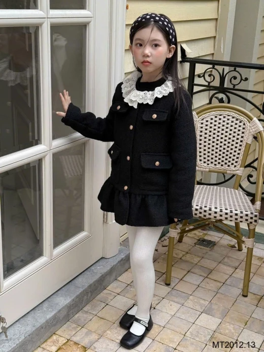 Áo khoác đen cổ ren dáng váy cho bé gái