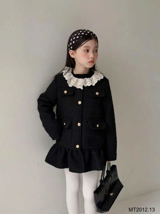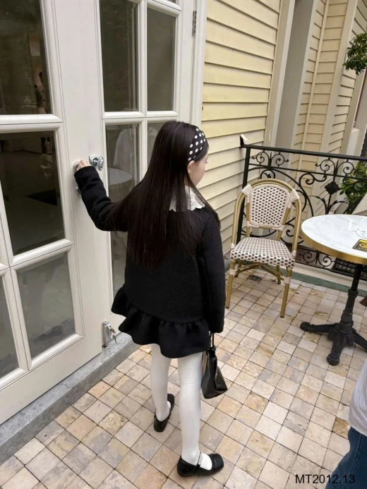 #2112a66-Áo khoác đen cổ ren dáng váy cho bé gái