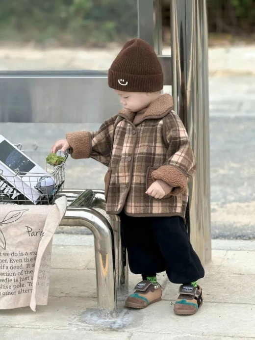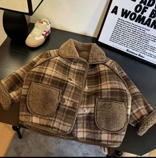 #0201c61 ÁO KHOÁC KẺ LÓT LÔNG CỔ BẺ CHO BÉ Mã hàng chất lượng ạ. Đẹp rẻ sz 80-140 🌸 giá 223k 🐬 chốt 0201