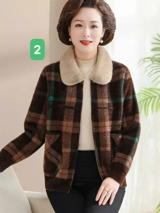 #2611a60 ÁO KHOÁC LEN CỔ LÔNG TRUNG NIÊN Len lông dày dặn, mềm như nhung, kết hợp cổ lông quý phái, diện tết cũng đẹp luôn! 2 mẫu đánh số ✅sz XL-4XL XL : 45-52kg 2XL: 53-59kg 3XL: 60-66kg 4XL: 67-75kg 🌸 giá 304k 🐬 chốt 26/11