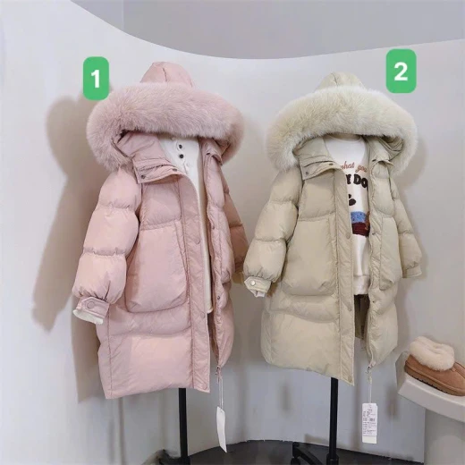 #2410a70 ÁO KHOÁC PHAO DÁNG DÀI MŨ PHỐI LÔNG ✔2 màu : đánh số ✔Size : 120-170 🌸 giá 289k 🐬 chốt 24/10
