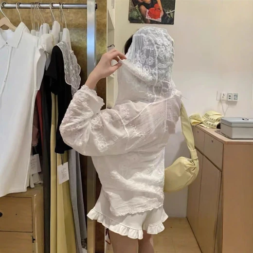#0404p31 Mụt chiếc sơmi khoác chống nắng xinh xẻo quá các n ơiii Hotgirl pán 3xx , e gom chỉ #2XXkk / về tay thui nhoa 😊 Rẻ bèo hà. Đi biển, đj cafe mix đơn giản mà chảnh lắm luôn. Must have mùa hè năm nayyyy ‼‼ KHOÁC THÊU REN CÓ MŨ Màu trắng Freesize dưới 62kg thoải mái ạ Oder 2-4w Giá: 165k Chốt 4/4