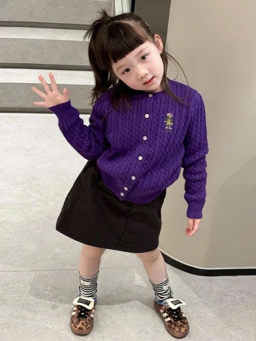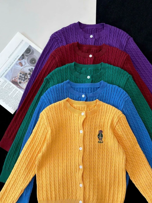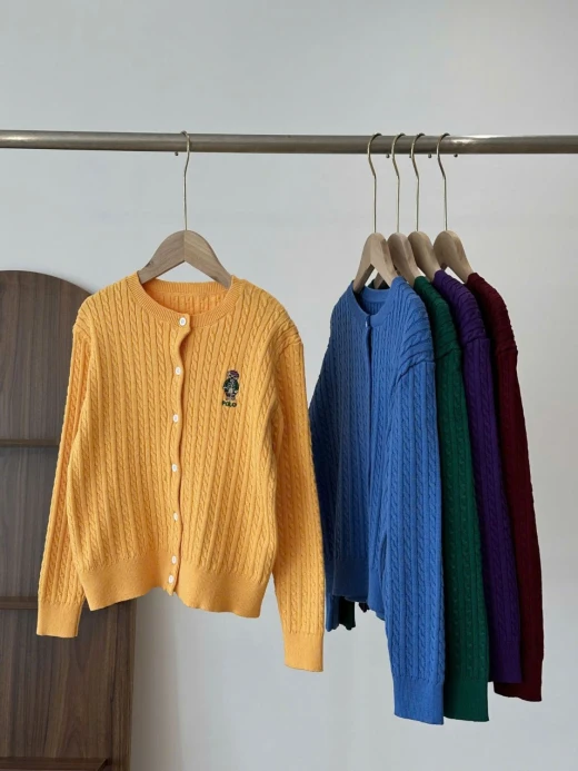 #1612a65 ÁO LEN CARDIGAN THÊU GẤU CHO BÉ Vibe này mùa đông mặc vào Sang ngay tắp lự 💯 5 màu đánh số sz 90-150 🌸 giá 214k 🐬 chốt 16/12