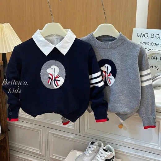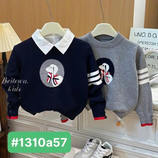 #1310a57 ÁO LEN HỌA TIẾT CÚN CHO BÉ ✨ Chất len dày dặn, đanh mịn – sờ cực thích tay ✨ Dễ mix với sơ mi, áo thun, quần jean…xì tai bảnh lại còn ấm cho bé zai , hàng gom chuẩn hãng nên chất mềm đẹp fom lên đẹp lắm nha ✅ sz 100-160 Nhanh tay chốt ngay một em để mix đồ mùa đông này nha 💕 XÁM HẾT 130 gía: 162k Chốt 1310