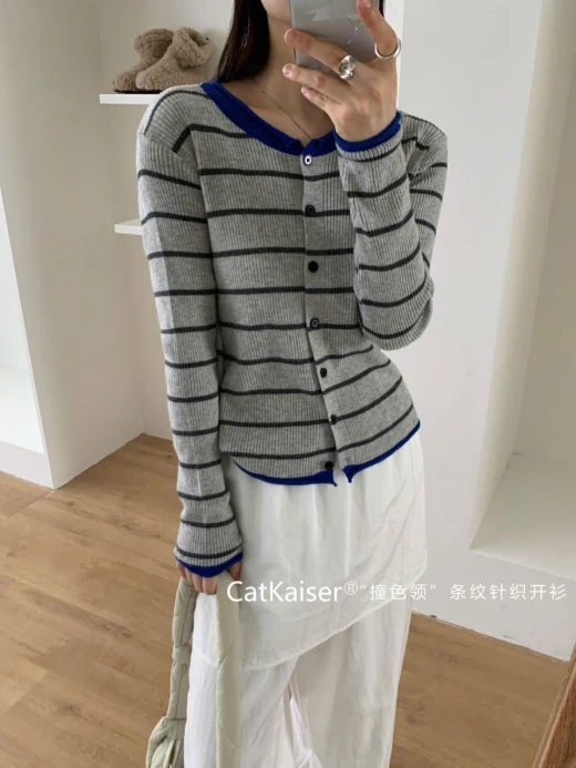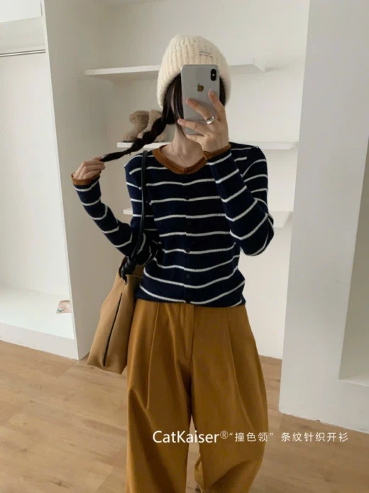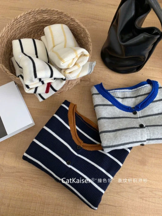 #2310a10 ÁO LEN KẺ MỎNG CATKAISER Đi học, đi làm, dạo phố, du lịch… Thêm phụ kiện như mũ len hoặc túi tote là có ngay set outfit thu đông trẻ trung. 4 màu đánh số freesize 42-65kg 🌸 giá 144k 🐬 chốt 23/10