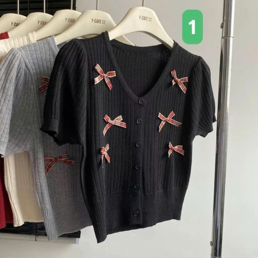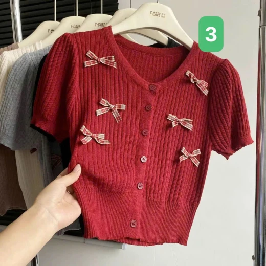 #2312a55 ÁO LEN NGẮN TAY PHỐI NƠ Ngọt ngào chuẩn tiểu thư Pháp Chất len mịn mát, dáng ôm nhẹ tôn eo – mặc lên là xinh ngay Thiết kế nơ nổi bật, vừa nữ tính vừa sang chảnh, diện đi chơi hay đi làm đều hợp 4 mẫu đánh số ✅frsz dưới 60kg 🌸 giá 95k 🐬 chốt 2312