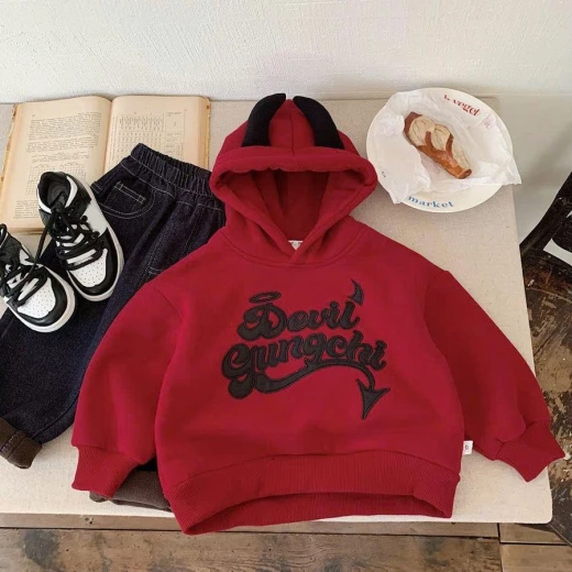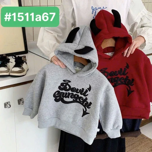 #1511a67 ❌ ❌ Áo nỉ hoddie sừng bé trai Áo này đỏ diện Tết quá đẹp, mẹ chỉ cần mix thêm chiêcd quần jeans/kaki cho bé là bao chất. #249kkk/c ✅ 2 màu: Đỏ , XÁm ✅ Sz: 90-140 (form to thoải mái, k trừ hao kẻo rộng nha các c) Mai e chốt mua luôn đợt cuối để trả kịp Tết ạ. Giá: 181k Chốt 1511