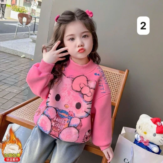 #1911a61 LỚ NGỚ VỚ DEAL XINH ĐÃ KITTY LẠI CÒN LÓT LÔNG XIU XỈU ‼️ ‼️ Áo nỉ kitty xinhhhh lót lông 2 màu : e đánh số 90-140 90 : 9-12kg 100: 12-15kg 110: 15-18kg 120 : 19-21kg 130: 22-24kg 140: 25-28kg ===== chốt 19/11 giá 92k/1c