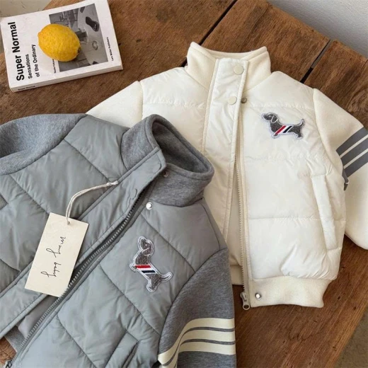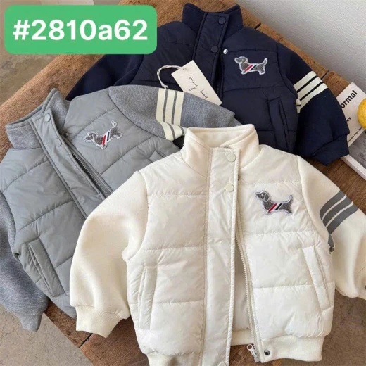 #2810a62 ÁO PHAO PHỐI NỈ MMY THÊU CHÓ #xxxk/c - 3 màu: Xám,Than, Kem - Sz: 90-150 Giá: 273k Chốt 2810