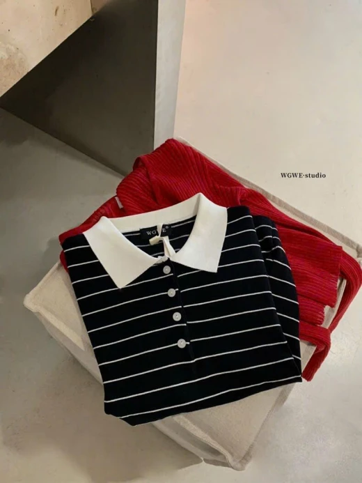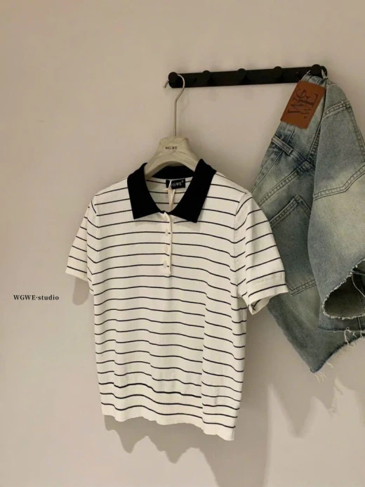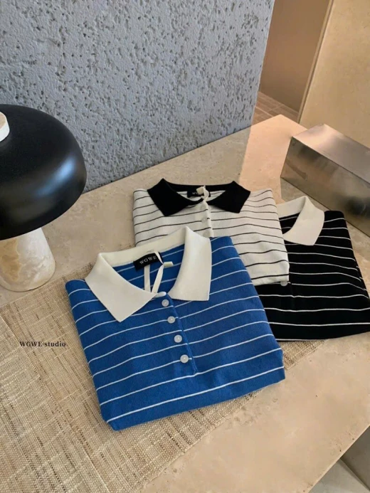 #0103p28 ÁO POLO KẺ NGANG WGWE 🍑 Màu lên siêu xinh, mặc cực tôn da luôn ạ 🍓 Có 3 màu đánh số ✅ Freesize 🌸 giá 170k 🐬 chốt 1/3