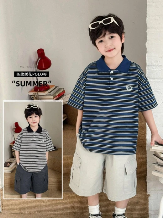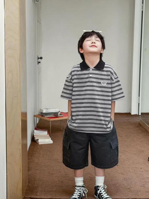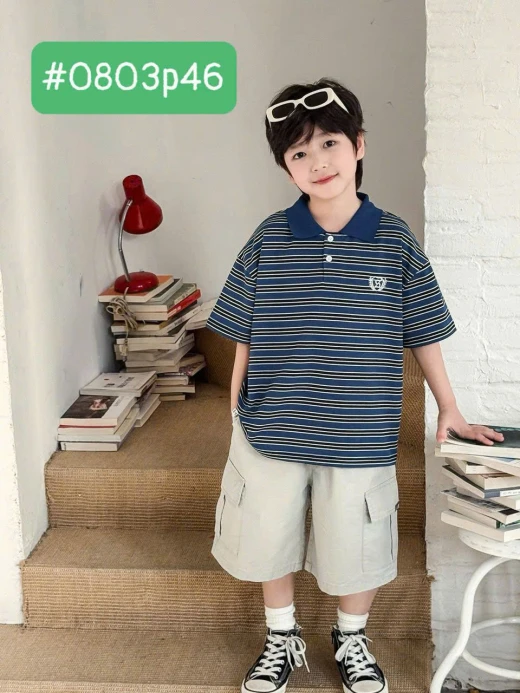 #0803p46 l ÁO POLO MIX QUẦN LỬNG AOAOKIDS 2026 Form polo rộng rãi thoải mái – Dễ mặc, không kén dáng Mặc đi chơi, đi học hay đi tiệc đều đẹp trai hết nấc! ✅ Áo 2 màu: sọc xanh- sọc xám Quần 2 màu: xám trắng - xám than ✅ sz 90-150 Sz 90: 9-12kg Sz 100: 12-15kg Sz 110: 15-18kg Sz 120: 18-22kg Sz 130: 22-26kg Sz 140: 26-30kg Sz 150: 30-34kg Màu sắc của sản phẩm thực tế có thể đậm or nhạt sáng or tối hơn ảnh do hiệu ứng ánh sáng & góc chụp sản phẩm Giá: áo 143k ,quần 172k Chốt 0803