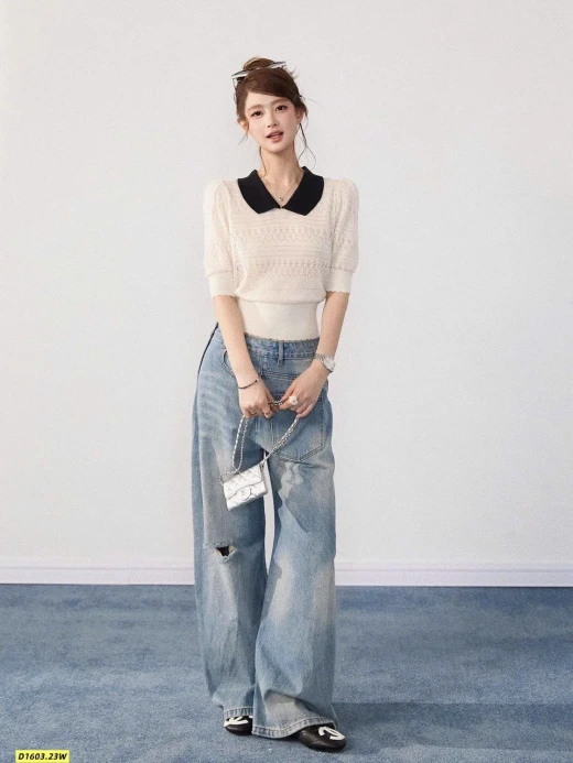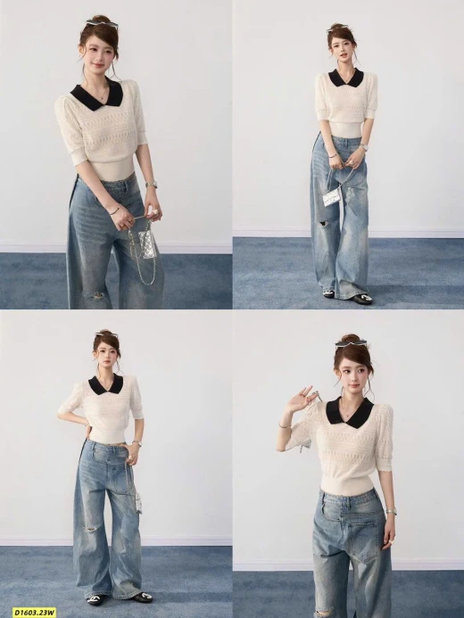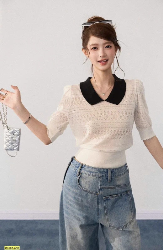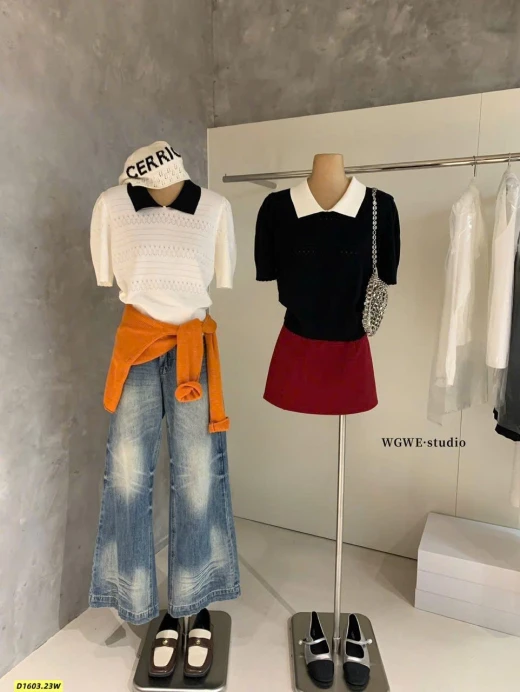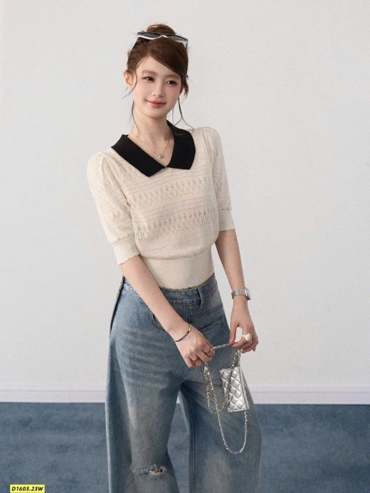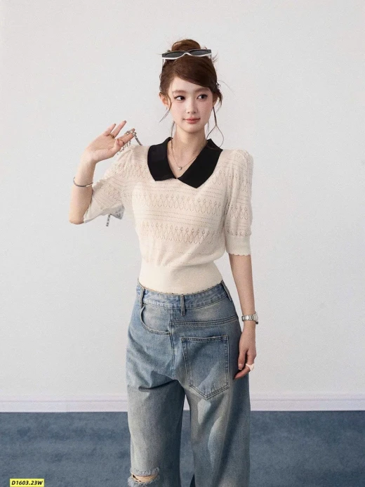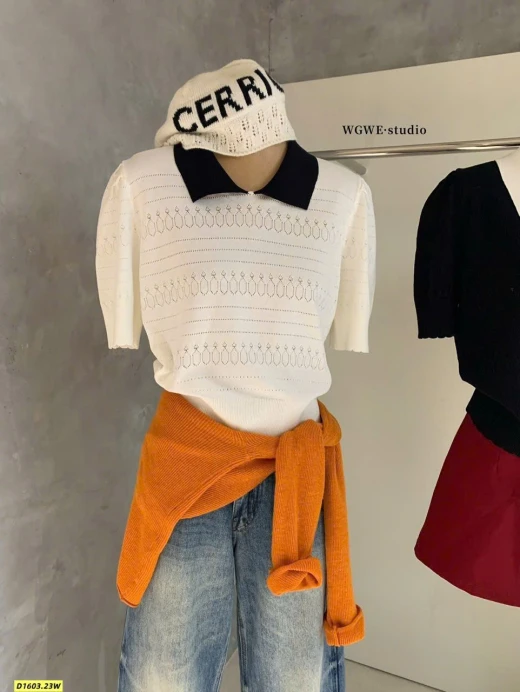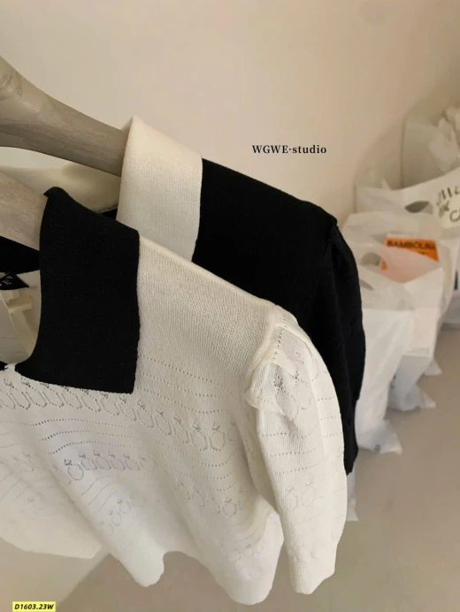 Thiết kế cổ polo thanh lịch, họa tiết dệt nhẹ nhàng, mặc lên vừa xinh vừa sang.