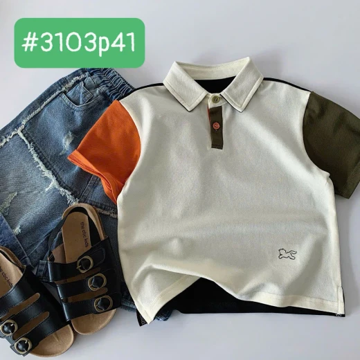 #3103p41 ÁO POLO PHỐI MÀU CHO BÉ TRAI sz 90-140 90: 11-13kg 100: 13-15kg 110: 15-17kg 120: 17-20kg 130: 20-25kg 140: 25-30kg 🌸 giá 140k 🐬 chốt 31/3