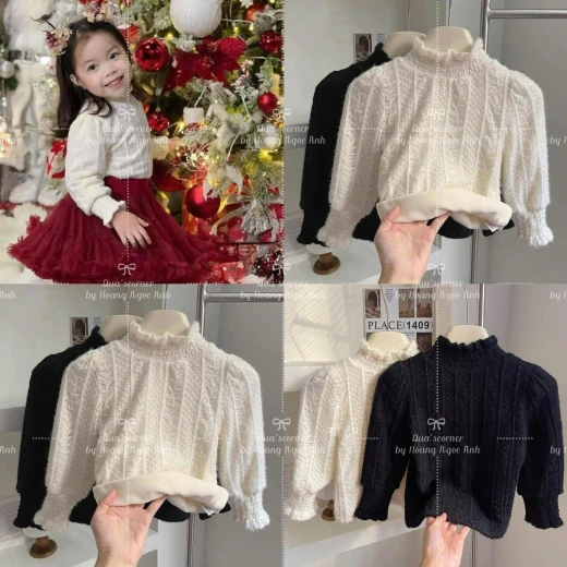 #2211a55 Chiếc áo dày ấm mix mọi thứ luôn ạ , trước không chuẩn bị cho Tết e mua cái áo hơn 2 trăm mà không dày ấm bằng một nửa luôn ❤️ Khách hỏi mua thêm quá nhiềuuuu em gom thêm đợt mớiii. Em áo này vừa ấm vừa xinhh mix đồ cực đẹp. Tin em đi nó xuất sắc lắm ạ.. ‼️ ‼️ Áo ren lót nỉ nhung siêu ấm.. Hnay em od freecong cho mọi ngừoi luôn #1xxkk/c 2 màu: kem,đen size 90 - 140 ❤️❤️❤️❤️ Sz90 : 10-13kg Sz100 : 13-15kg Sz110: 15-17kg Sz120 : 17-19kg Sz130: 19- 22kg Sz140 : 23-26kg ==== chốt 21/11 giá 112k/1c