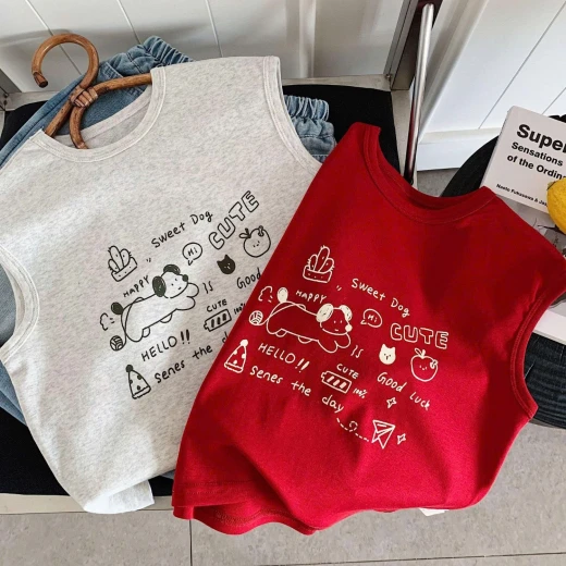 #2803p47 ÁO SÁT NÁCH HỌA TIẾT MAIBAO H1081 - 2 MÀU: Đỏ , Xám - Size: 90-140 Bảng sz tham khảo 100: 13-15kg 110: 15-17kg 120: 17-20kg 130: 20-25kg 140: 25-30kg (hàng thực tế có thể đậm hoặc nhạt hơn so với mẫu) 🚫 Hàng OD trả sau 2-5 tuần, có thể nhanh hoặc chậm hơn tuỳ shop phát hàng Giá: 90k chốt 2803