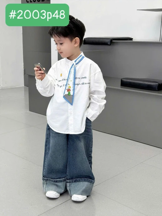 #2003p48 🤍 SƠ MI CHỮ CHO BÉ 🌿 Vải nhẹ, thoáng – bé mặc cả ngày vẫn dễ chịu 💎 Điểm nhấn in chữ + khăn cổ xinh xắn, nhìn là khác biệt ngay 📏 Size tham khảo: 90: ~10–12kg 100: ~12–14kg 110: ~14–16kg 120: ~16–18kg 130: ~18–21kg 140: ~21–25kg 150: ~25–30kg 👦 Mặc đi chơi, đi học hay chụp hình đều “auto đẹp trai” gía: 151k Chốt 2003
