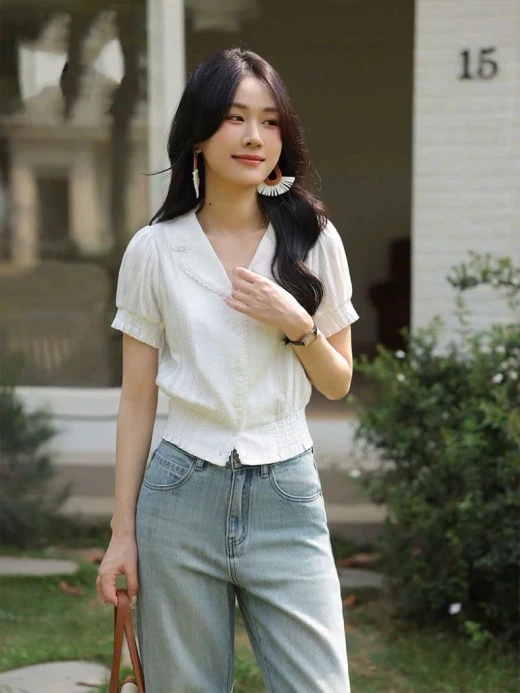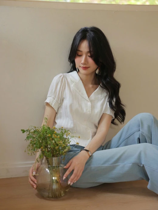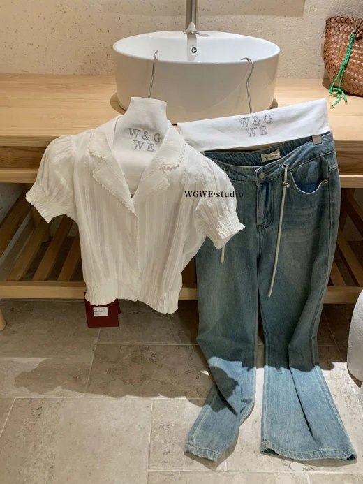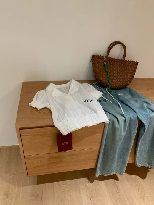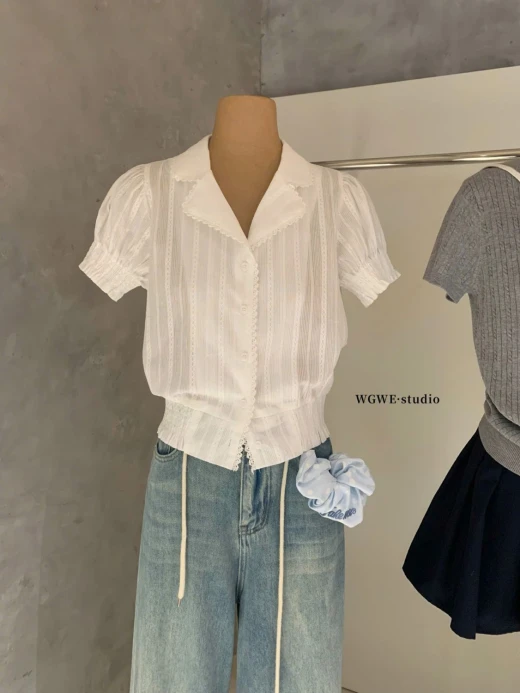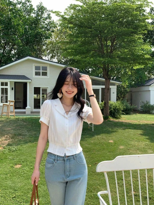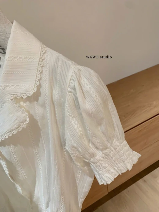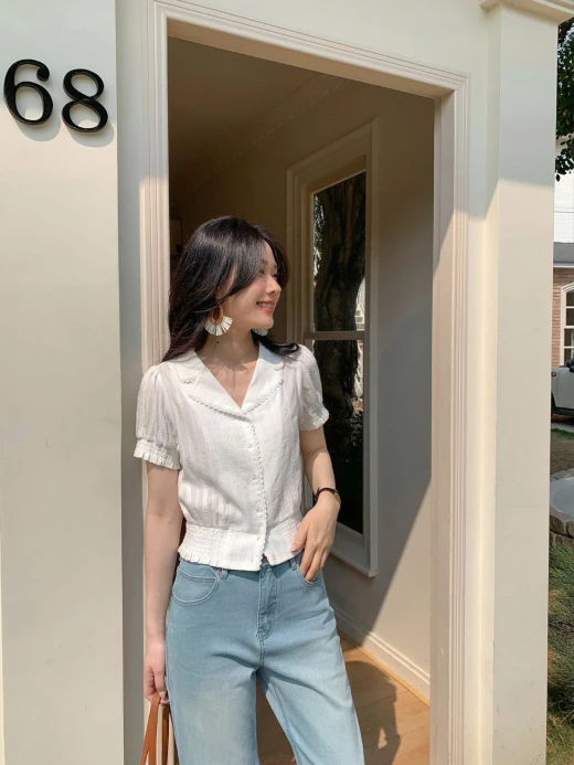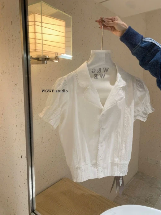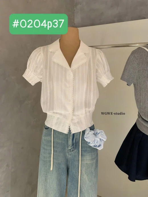 #0204p37 ÁO SƠ MI CỘC TAY WGWE 8891 Mẫu này đi làm, đi chơi đều xinh và mix rất nhiều kiểu cùng chân váy, quần dài, quần đùi màu trắng sz S,M 🌸 giá 208k 🐬 chốt 2/4