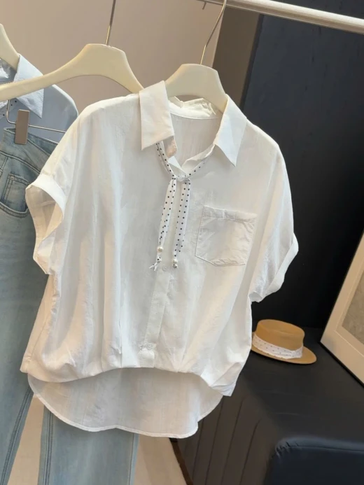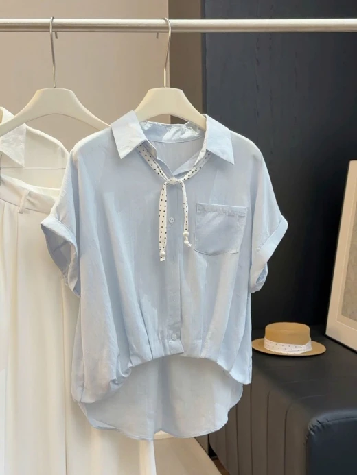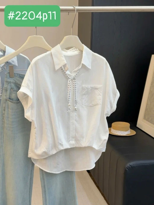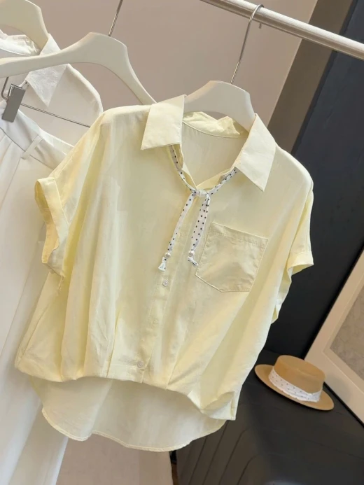 #2204p11 Áo sơ mi ngắn tay kiểu Hàn Quốc nhà Anna dành cho nữ Thiết kế mới mùa hè 2026, thời trang, trẻ trung, đơn giản, đa năng, tôn dáng và thanh lịch 3 màu : trắng, xanh, vàng Zá #235k/c 🌸 giá 180k 🐬 chốt 22/4