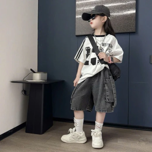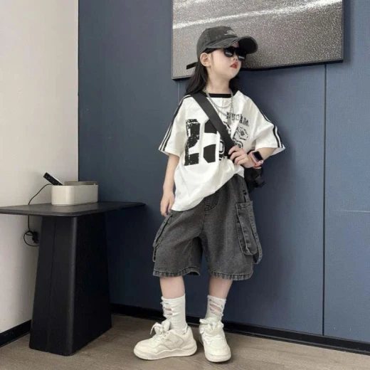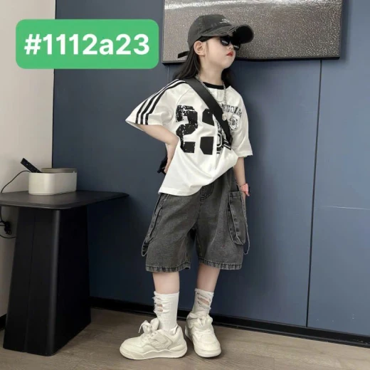 #1112a23 Áo sọc vai mix short jeans đen Outfit cho bé siêu cool đây rồi! Mặc đi học, đi chơi hay đi dạo đều cực yêu ✔Size : 120-170 🌸 giá áo 134k quần 169k 🐬 chốt 11/12