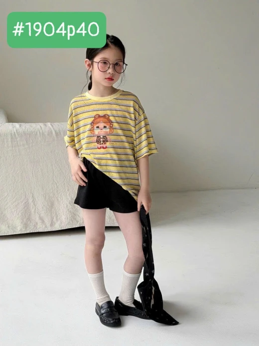 #1904p40 ÁO THUN KẺ HỌA TIẾT HOẠT HÌNH MO XIAOMENG #xxxk/c - duy nhất 1 màu như hình - Sz: 100-150 Bảng size tham khảo 100 : 13-16kg 110 : 16-18kg 120 : 19-21kg 130 : 22-25kg 140 : 26-30kg 150 : 30-35kg 160: 35-45kg ☘️Giá: 108k 🐬Chốt 19/4