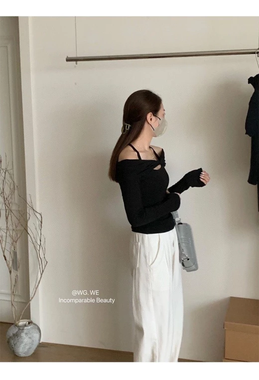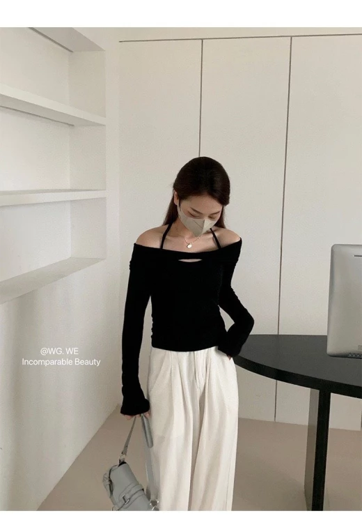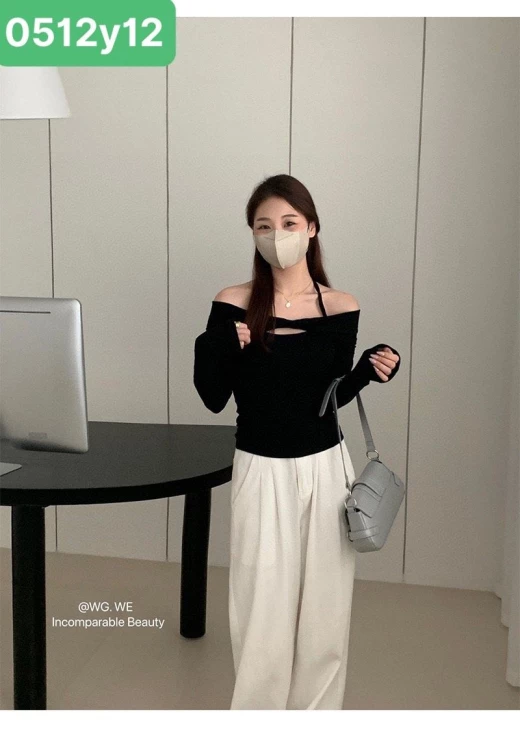 #0512y12 ?ÁO THUN KÈM YẾM DÂY HÃNG WG.WE ❣️Trời se lạnh diện em áo len này là hợp lý lun ạ. Chất THUN đẹp, kèm theo yếm dây. Kết hợp cùng quần suông đi làm đi chơi đều đẹp luôn nhé ? ?3 màu; đen-be-xám ✅sz S - M S <52kg M <60kg ? giá 156k ? chốt