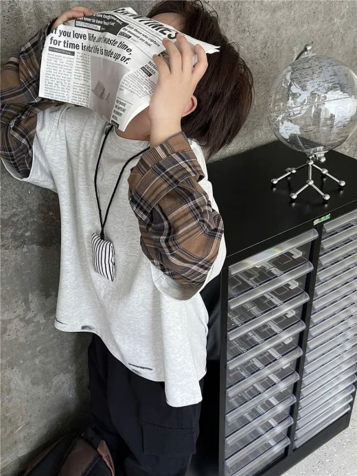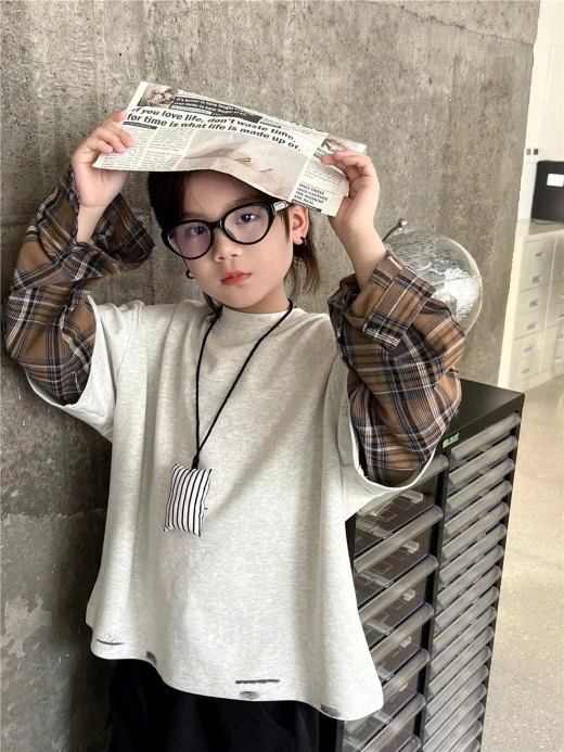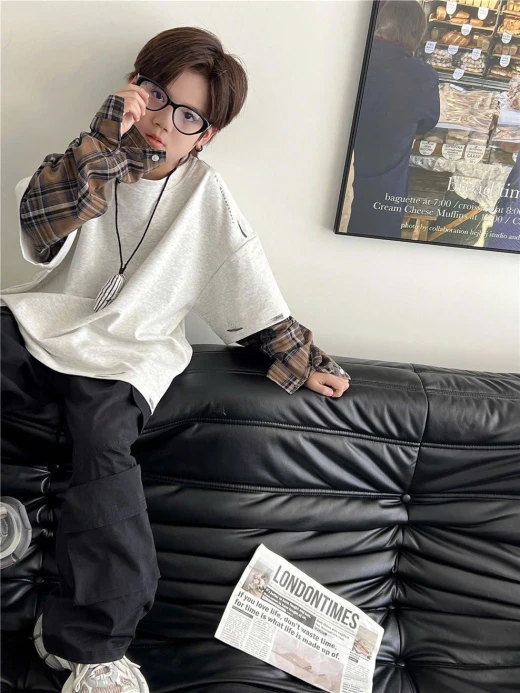 #1312a59 ÁO THUN XÁM GIẢ 2 LỚP CARO NÂU SNIDOLS ✔Size : 100-160 🌸 giá sz 100-140 giá 191k sz 150 giá 207k sz 160 giá 224k 🐬 chốt 13/12