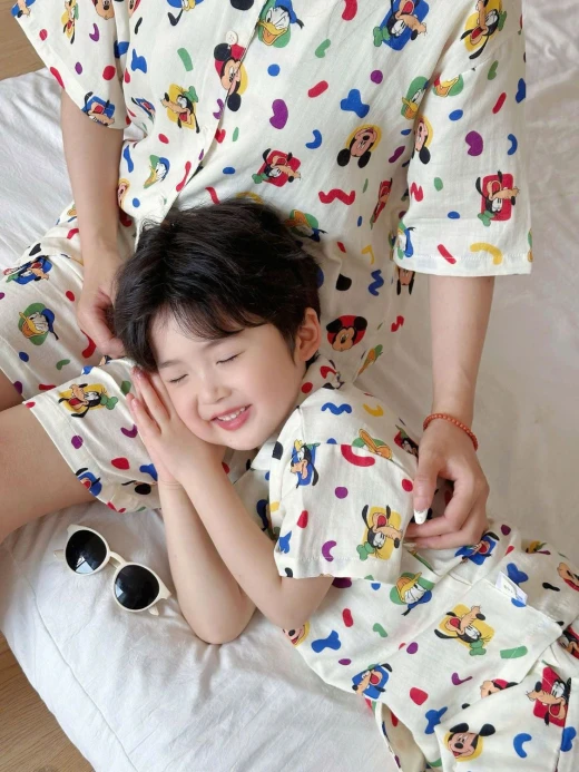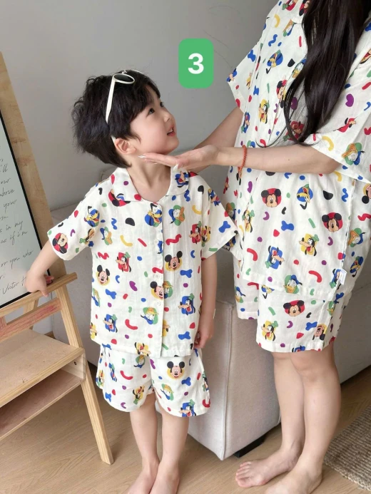 #0704p36 BỘ NGỦ PIJAMA CHO MẸ VÀ BÉ Em gom bộ ngủ cho các bé nhé ạ. Phù hợp cho cả bé trai lẫn bé gai nha Có sz cho mẹ mặc đôi với con lun nè 3 mẫu đánh số sz 90-140, L ☘️Giá: sz 90-140: 175k sz L: 218k 🚛Hàng od chốt 7/4