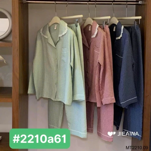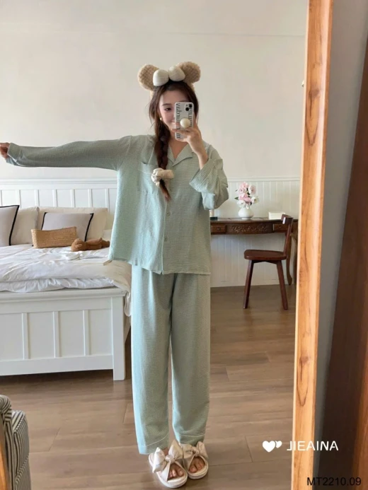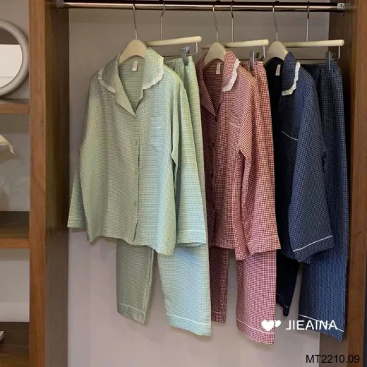 #2210a61 💖 SẮM PIJAMA NGAY THÔI CÁC MẸ ƠI! Thời tiết se lạnh, mặc là chuẩn đẹp nha 😍 ♥️♥️Bộ pijama họa tiết caro Hàn basic, dễ mặc mà vẫn cực xinh. 💲 Giá: 189K/BỘ Chuẩn hãng JIEAINA – chuyên đồ ngủ cực kỳ mềm mịn và thoải mái 🌙 🌸 Màu: Xanh mint / xanh than/ Đỏ Size: M: 40–50kg L: 50–60kg XL: 60–70kg 2XL: 70–80kg Giá: 152k Chốt 2210