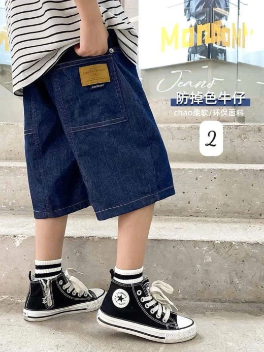 #0103p16 ‼️ ‼️ BST QUẦN SOOC JEAN NGỐ BÉ TRAI SZ ĐẠI #1xxk/ cái, từ 2c giá #1xxk/ cái Một dáng quần ko thể thiếu cho bất kỳ 1 bé trai nào đây ạ. Thiết kế cạp chun bé mặc rất thoải mái có thể phối được các kiểu trang phục cho bé đi chơi , đi học Mẫu mới nè các mom, kiểu dáng thời trang, mix đồ cực phong cách ✅ 7 mẫu e đánh số ✅ Sz 110-170 Bảng sz tham khảo Sz 110: 14-18kg Sz 120: 18-23kg Sz 130: 23-27kg Sz 140: 27-32kg Sz 150: 32-37kg Sz 160: 37-42kg Sz 170: 42-48kg Màu sắc thực tế của sản phẩm có thể đậm hoặc nhạt hơn ảnh do hiệu ứng ánh sáng và góc chụp. ====== MẪU 3 đến 7 ko có sz 110 🌸 giá 105k 🐬 chốt 1/3