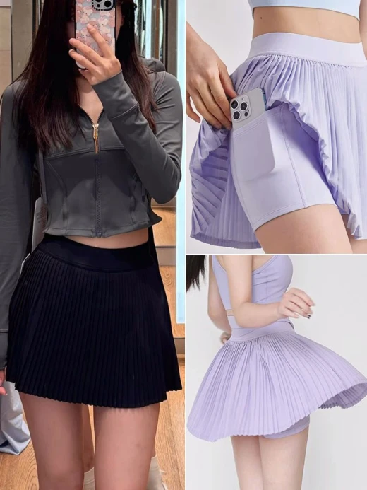 #1610a67 Ra sân là phải có váy xinh! 🙆♀️ Váy đẹp thoáng mát, có quần trong ko lo lộ hở, đố ai nhìn thấy gì 🤣 CHUẨN CHÍNH HÃNG LULU CHUYÊN DÒNG THỂ THAO Ạ ‼️ ‼️ Chân váy thể thao xếp ly xinh lắm, đúng tinh thần thể thao luôn đó. Chị e mix với áo bra dây hoặc thích kín đáo hơn nữa thì cứ mix áo phông thôi đủ xinh xắn, trẻ trung rồi 💰 xinh #1xxk ➖Size: 1(40-52kg), 2(52-62kg), 3(62-75kg) ➖2 màu: đen, tím ======== chốt 16/10 giá 115k/1c