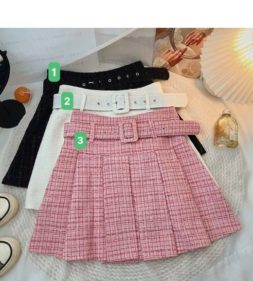 #2912a65 CHÂN VÁY TWEED XẾP LY KÈM ĐAI Thiết kế chân váy xếp ly dáng xòe, form đứng chuẩn. Kèm đai cùng chất tạo điểm nhấn eo gọn gàng 3 màu đánh số ✅Size: XS-2XL Bảng size tham khảo: XS: 35 – 41kg S: 40 – 47kg M: 48 – 54kg L: 54– 59kg XL: 59 – 64kg 2XL: 64 – 70kg 🌸 giá 151k 🐬 chốt 2912