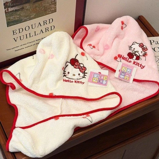 #1404p47 COMBO 2 KHĂN TRÙM TÓC HELLO KITTY họa tiết kitty mẹ thích con thích , chất vải lông san hô mềm mại, không bị rụng lông sau khi giặt. họa tiết hình thêu tinh tế. Only #xxxk/set 2c Trắng + Hồng Kích thước: 25*65cm ☘️Giá: 64k 🐬Chốt 14/4
