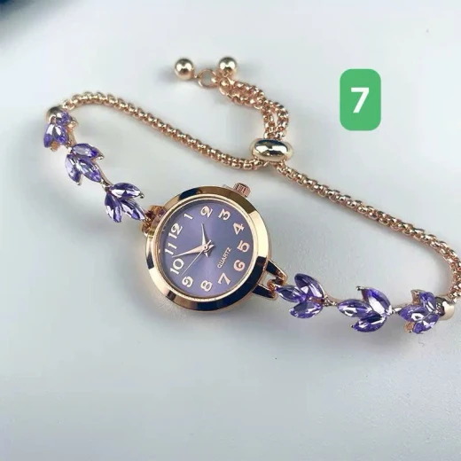 #1204p45 ĐỒNG HỒ LẮC TAY ĐÍNH ĐÁ TÍM 🦋Phần dây đeo được cách điệu với những viên đá hình lá màu thủy chung, bắt sáng cực tốt. Dây dạng rút linh hoạt, dễ dàng điều chỉnh vừa vặn với mọi kích thước cổ tay. ✅ 7 màu đánh số 🌸 giá 58k 🐬 chốt 12/4