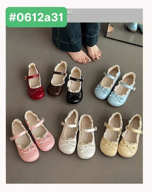 #0612a31 GIÀY BÚP BỂ VIỀN REN QUAI NGANG Thiết kế cổ điển pha nét tiểu thư, viền ren tinh tế kết hợp nơ xinh xắn. Phù hợp đi làm, đi học hay dạo phố, mang lại vẻ nữ tính dịu dàng. 7 Màu: Đánh số ✅️ Size: 35-40 🌸 giá 175k 🐬 chốt 6/12