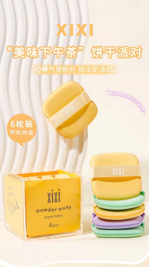 #1010a70 HỘP MÚT ĐÁNH NỀN MỀM MỊN 6 CÁI Set hộp 6 miếng mút đánh nền siêu mềm mịn, giúp tán kem nền, phấn nước đều màu, mướt mà không bị vón cục hay lem. 3 màu đánh số 🌸 giá 32k 🐬 chốt 10/10