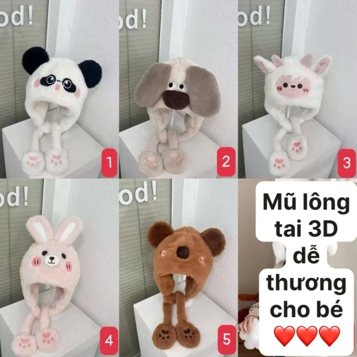 #2210a69 Mũ về siêu đẹp e gom chuyến nữa kịp giờ salee nhé. Năm nay siêu lạnh Mùa đông đi xe máy gió lùa lạnh tai các con lắm nên e mở gom mũ lông kid cho các con nha ‼️ ‼️ MŨ ANIMAL BÉ Sale rẻ lắm #xxk/1c ♥️♥️♥️ Mũ này che tai che cổ làm thành khăn đỉnh luônnn Mùa đông các con đi học thì chỉ cần mũ này đi đường cực tiện luôn Bây h thì thấy hơi nóng bức để mua nhưng e đảm bảo khi gió lạnh về mẹ naog cũng cuống quýt tìm. Cả trăm nghìn cũng mua ấy chứ ✔freeSize cho bé : 2-10 tủi 5 màu e đánh số Od china 2-4w ========= chốt 22/10 giá 45k/1c