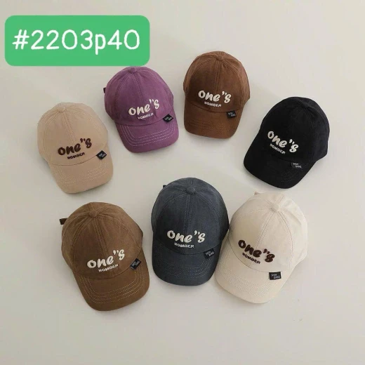 #2203p40 MŨ LƯỠI TRAI CHỨ ONE'S CHO BÉ Mũ sale nhẹ em gom nhanh tiếp mng ơi, cho bé từ 2-6y đội xinh lắmmmmm 7 màu như hình đánh số Giá: 40k/c Chốt 2203