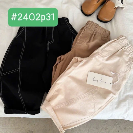 #2402p31 QUẦN BAGGY BASIC CHỈ NỔI MMY ✔3 màu : đen , kem , nâu ✔Size : 90-150 🌸 giá 151k 🐬 chốt 24/2