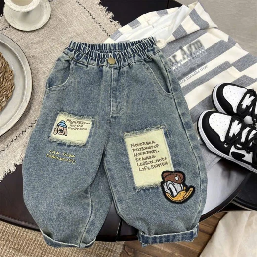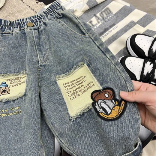 #2502p33 QUẦN JEANS BAGGY THÊU VỊT DONAL Bé mặc đi chơi – đi học đều chuẩn xịn mẹ ơi! ✔Size : 80-130 🌸 giá 179k 🐬 chốt 25/2