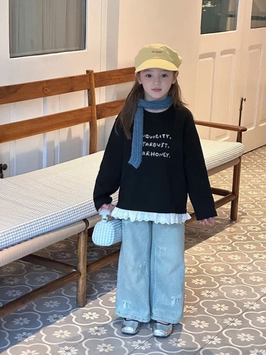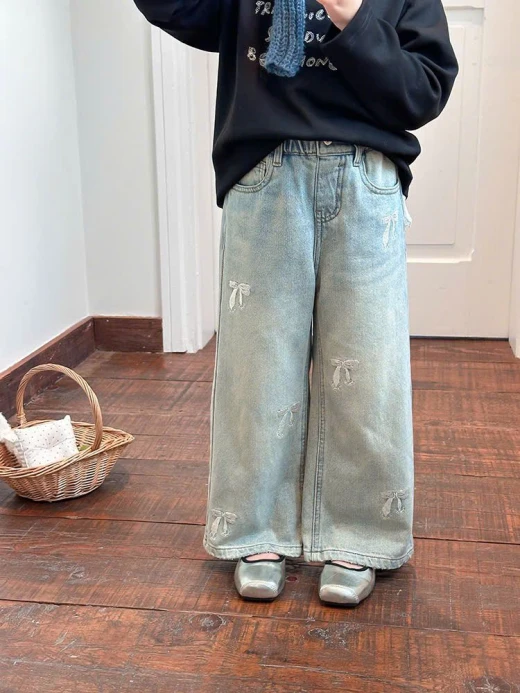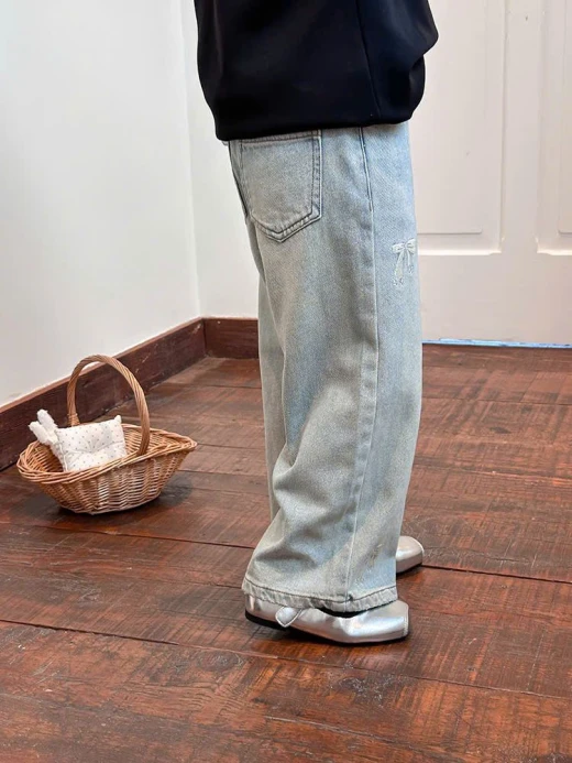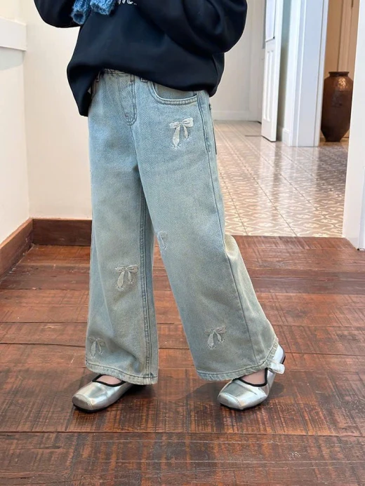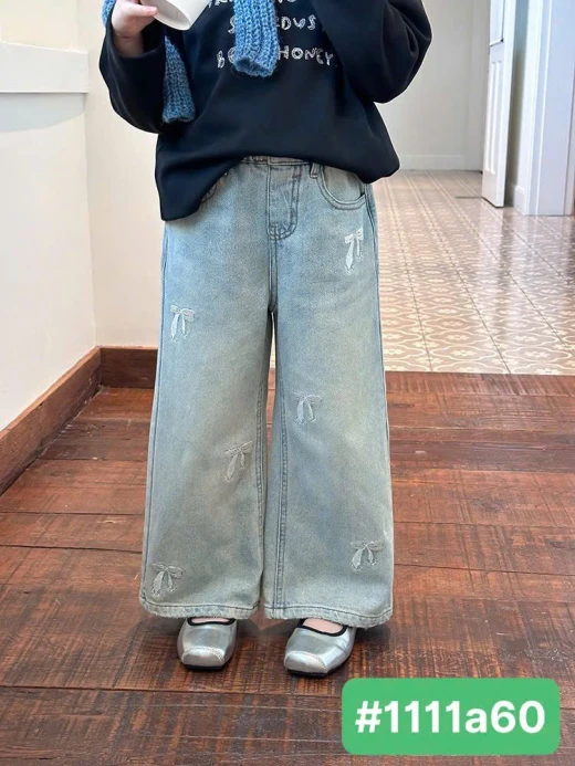 #1111a60 QUẦN JEANS SUÔNG THÊU NƠ AMBB ✔Size : 90-170 🌸 giá sz 90-150 giá 217k sz 160 giá 238k sz 170 giá 258k 🐬 chốt 11/11