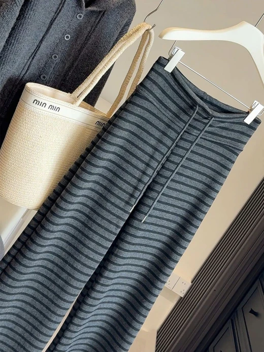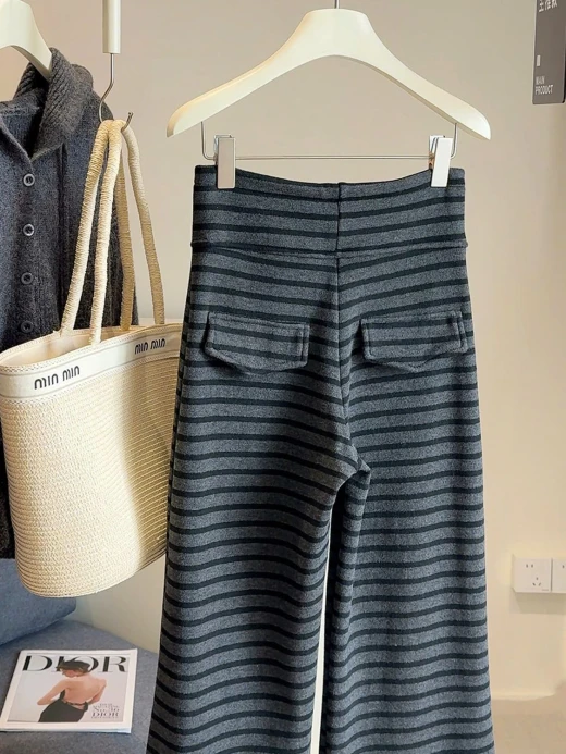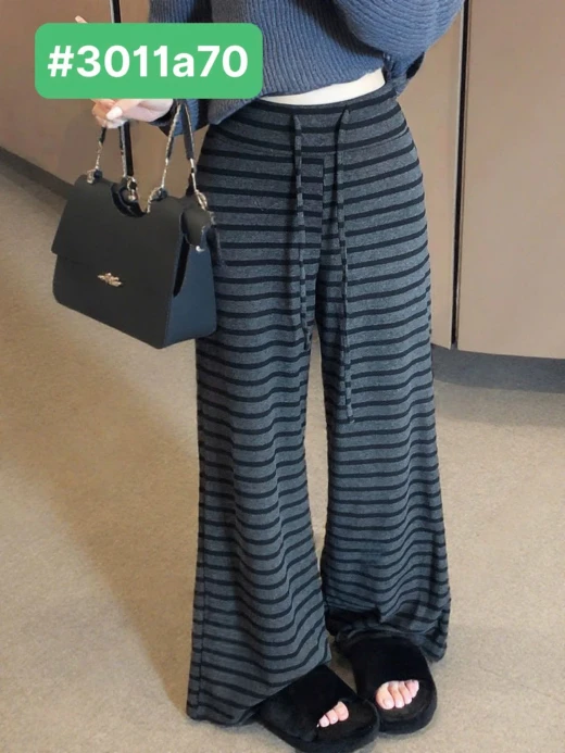 QUẦN KẺ NGANG ỐNG RỘNG LÓT LÔNG CỪU ANNA