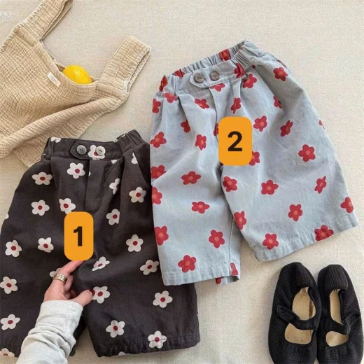#3003p23 QUẦN SUÔNG CẠP CHUN HỌA TIẾT HOA BG Chỉ cần phối đơn giản với áo thun basic là đã auto lên dáng nha 2 màu đánh số sz 80-120 🌸 giá 99k 🐬 chốt 30/3