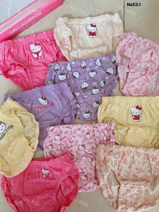 #1003p50 ‼️ Hàng về đẹp quá e gom típ đây ạ 🥰 Chuẩn xịn hàng QC - cotton mềm mát thấm hút mồ hôi tốt lun ạ Tạo thói quen mặc quần chip SỚM cho bé các mẹ ơi. Giữ gìn vệ sinh bảo vệ con ạ ❣️ Set 10 quần #199k/set 2 mẫu: Kitty, Kurumi Bảng size : Sz 60: 8-10kg Sz 65:10-12kg Sz 70: 12-15kg Sz 75:15-19kg Sz 80:20-25kg Sz 85:25-30kg Sz 90:30-37kg Bé mông đùi to mẹ tăng size Giá: 153k Chốt 1003