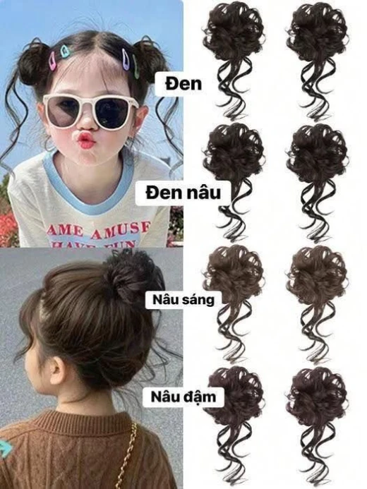 #0501c55 M1 deal tặng luôn #xxkkk / 1 cặp 2 búi Bíe nhà e búi tóc xinh nhắm mà tóc chưa đủ nhèo, mà mình tự búi cũng ko đều đẹp nữa ạ. E gom set 2 búi tóc giả cho các bé iu nhaaaaa ‼️ ‼️Búi tóc giả cho bé xinh xỉuuu Tết diện áo dài hay váy có tí búi tóc mặt tròn trịa, mắt long lanh iu lắm🌸🌸🌸 ✔️ Dễ gắn – dễ tháo ✔️4 màu : đen- đen nâu - nâu sáng- nâu tối 1 cặp 2c /1 màu giá 30k/1 cặp2c /1 màu chốt 0501